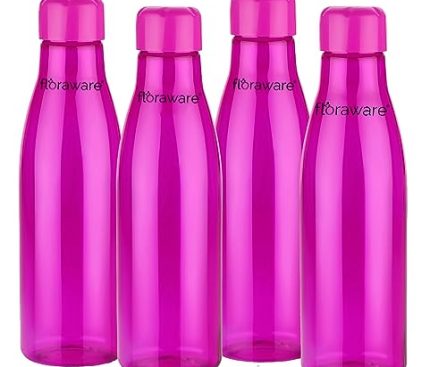 Kitchen Floraware Food Grade Premium Plastic Fridge Round Water Bottle, Drinking Bottle, 1000ml Pack of 4, Pink