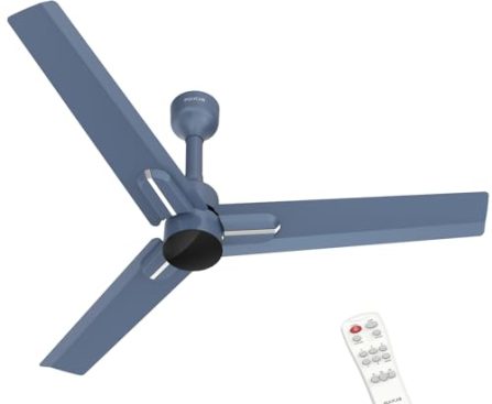 Kitchen Polycab Wizzy Neo 1200mm 5-Star BLDC, Remote Ceiling fan for Living Room | 55% Energy Saving, 100% Copper, High Air Delivery, 6 Speed Setting, Free Installation【Blue Silver】