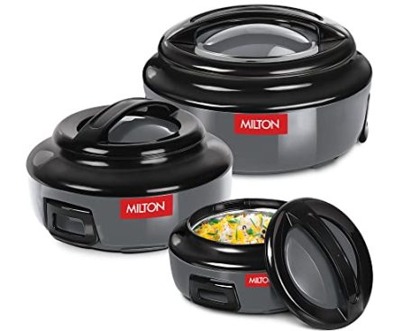 Kitchen Milton Ernesto Inner Stainless Steel Jr. Casserole Set of 3 (390,720 and 1320 ml), Grey | Easy to Carry | Serving | Stackable