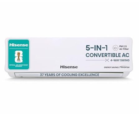 Major Appliances Hisense 1.0 Ton 3 star Inverter Split AC(Copper, 5-in-1 Convertible with Intelligent 4 modes, 4 Way Swing, Anti corrosion, Long Air Distance, AS-12TR4R3E, White )