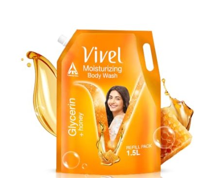 Beauty Vivel Moisturizing Body Wash, Glycerin & Honey Shower Gel, 1500 ml Supersaver XL Refill Pouch, For Soft, Glowing Skin, Mild and Pure Bodywash, For Women & Men