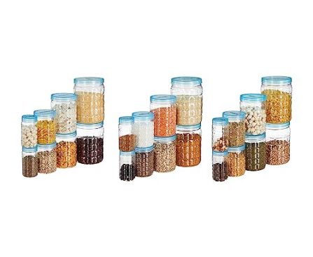 Kitchen Amazon Brand – Solimo Checkered Jar Container Set of 24 | 2000ML, 1000ML, 500ML, 250ML | Plastic | Transparent, Blue