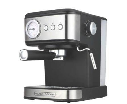 Kitchen BLACK+DECKER BXCM1001IN 1100W 10-Cup 15 Bar Expresso Coffee Maker | 1.5L Water Tank Capacity | Anti-Drip Feature | Auto Keep-Warm Function | 2-year Warranty -(Black+Grey)
