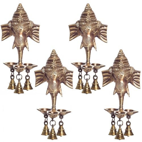 Archies Diwali Ganesh Ji Murti Diwali Gifts Ganesh Ganpati With Three Bells Hanging Lantern Diya Tealight Holder Brass Metal Tealight Candle Diyas (Pack Of 4) is available on Amazon.