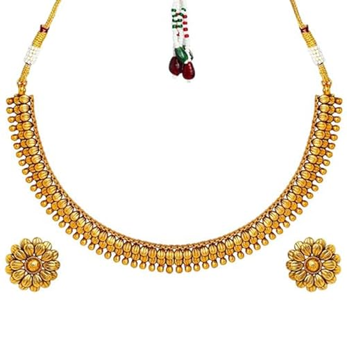 Fashion Frill Necklace For Women | Golden Necklace Set | Flower Necklace |Layered Necklace For Women | Necklace With Earrings | Traditional Necklace is available on Amazon.