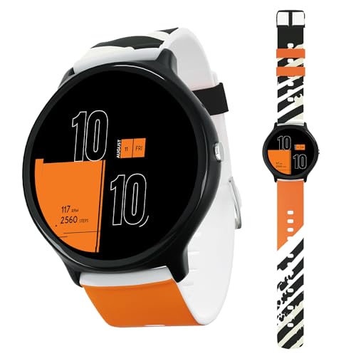 • FCUK TIDE with its 1.39″Full-touch screen and 360*360 Resolution Round Display is all set to Rock your Wrist with its ICONIC Look.; Supported Applications: Supports Applications like all Social Media channels/Text/Call Notifications, Bluetooth Calling, Raise & Wake Display, Voice Assistant, Do not Disturb mode, Find Watch, Weather Info, Photo Control, etc. Smart Fitness: Smart Fitness helps you to keep an Update about your Health with All your Exercise record, Step Count, Real time Heart Rate Check, Sleep Monitoring, Real time Blood Pressure Check and Oxygen Saturation.