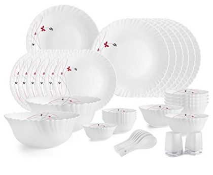 Larah By Borosil Silk Series Bali Opalware Dinner Set | 47 Pieces For Family Of 8 | Microwave & Dishwasher Safe | Bone-Ash Free | Crockery Set For Dining & Gifting | Plates & Bowls | Floral Pattern is available on Amazon.