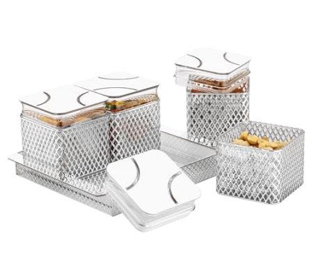 Kitchen PEARLPET Fiesta Air-Tight Dry Fruit Container Tray Set With Lid & Serving Tray, Airtight Plastic Storage Container Set 500 ml | Set of 4 | Silver