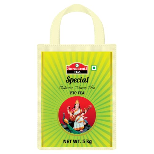 Unknown Binding Saraswati Special Assam Black Loose CTC Dust Tea, 5kg (Comes in Free Reusable Bag) – Strong, Aromatic & Rich | Black Assam CTC Dust Tea | Premium Kadak Chai Patti | Hotel Blend | Value Pack