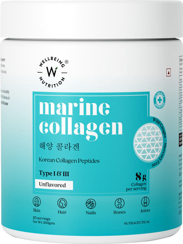 Wellbeing Nutrition Pure Korean Marine Collagen Powder|Supports Healthy Skin, Hair,Nails,Bone-200g(200 g) is available on flipkart.